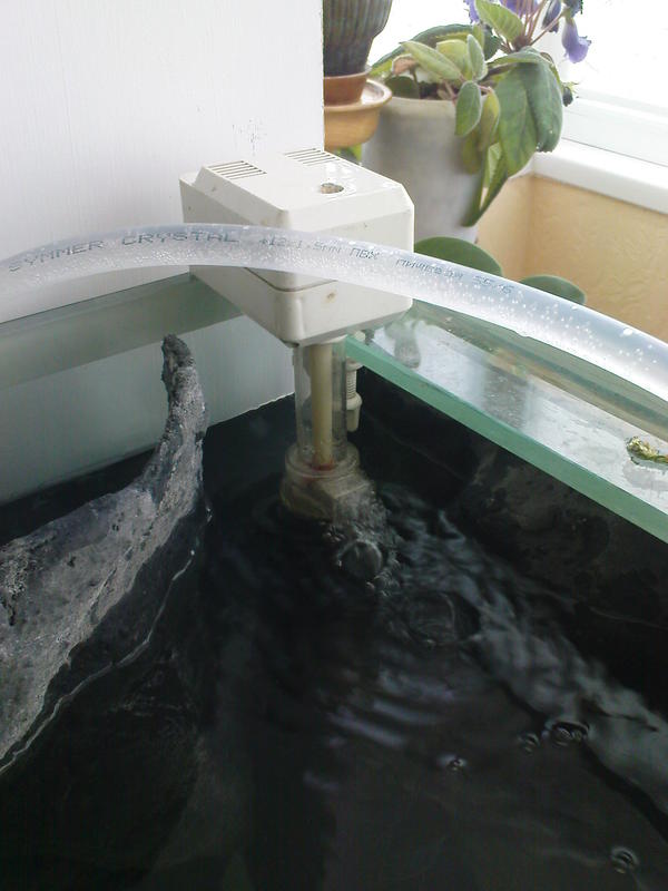 За идею спасибо, но внешне ничего поставить или повесить не получится, так как аквариум стоит между балконом и комнатой на всю ширину столешницы в 59см.
