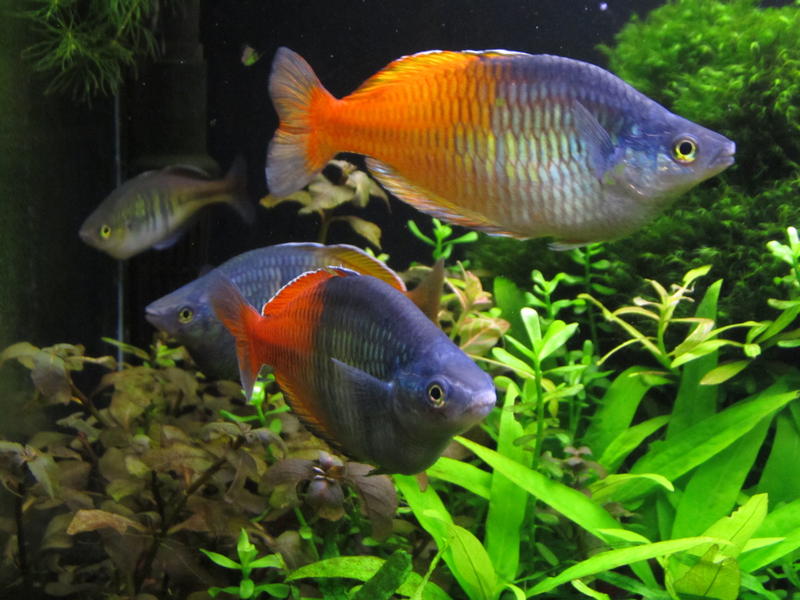 1. Melanotaenia boesemani,особенно под освещением с разными "фитолампами".Кто любит "травники" и крупную рыбу,то это очень хороший вариант,растения не трогают