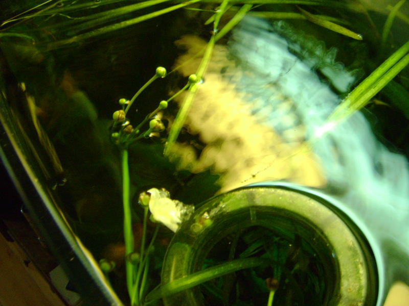 Добрий день! Підскажіть что за рослина. Наче єх., але який. Хоча я не впевнений. Та велика рослина в центрі акви, випускає стріли, цвіте білими квіточками на стрілі. В стаканчиках дітки.