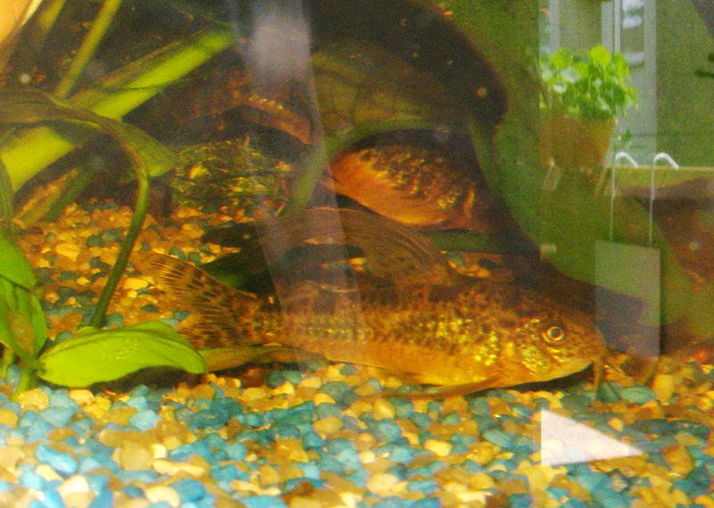 3.В добавок имею 3-их.... Сказать "Леопардовый", так у моих просматривается чёрное пятно на голове и нельзя сказать, что это "Коридорас пятнистый". У моих на спинном плавнике нет чёрного пятна. Короче -помесь!!
