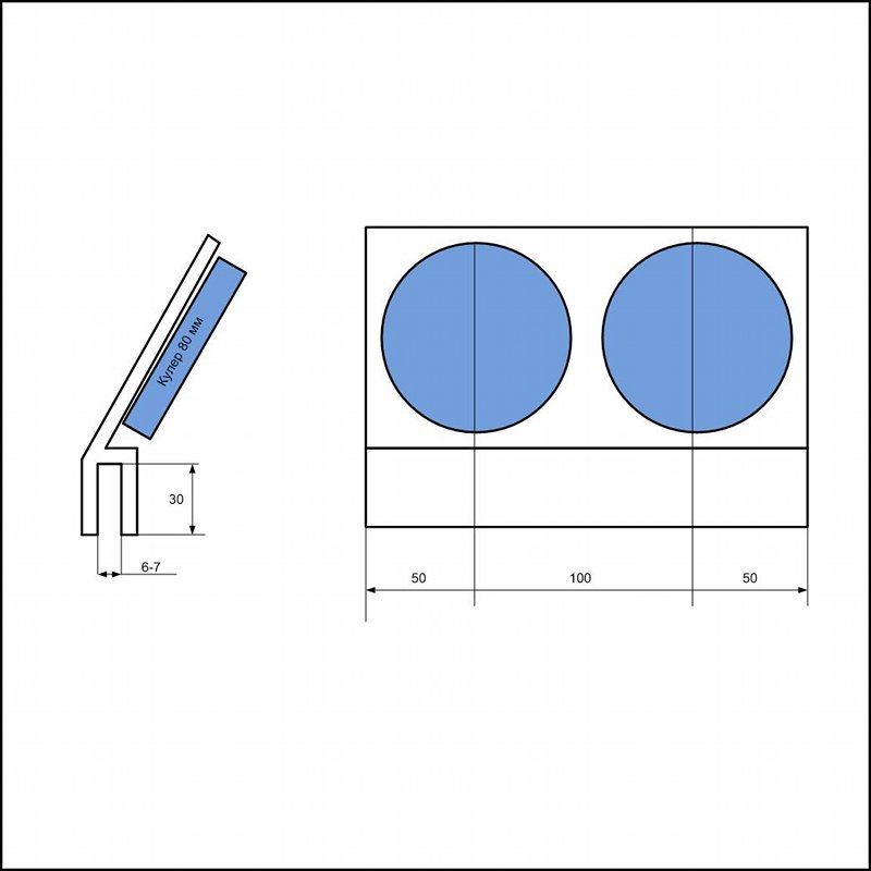 Корпус с креплением на стенку аквариума для установки двух 80 мм кулеров.