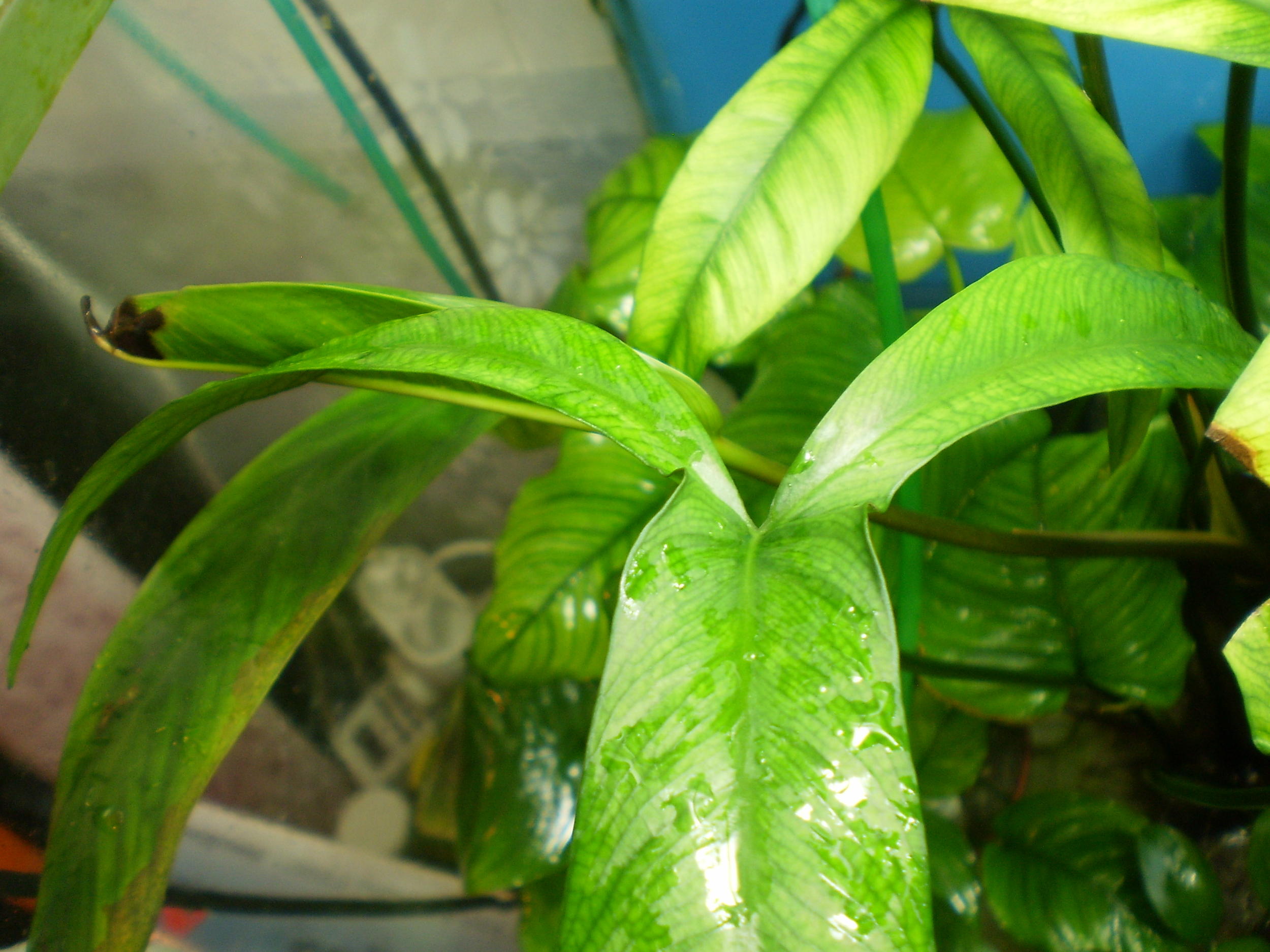 Содержание аквариумное более месяца,а то и два,уже не помню,и вот что хочу сказать-питательный раствор как по мне ерунда,растворено в воде куча элементов с бешенной концентрацией,полюбасу что-то где-то блокирует и в итоге не усваивается,в последние дни перед переходом на простое содержание,кусты выглядели чесно сказать не очень  .После 2-3х подмен наметилась тенденция на улучшение,сегодня 10-я подмена,всё представляю в картинках.