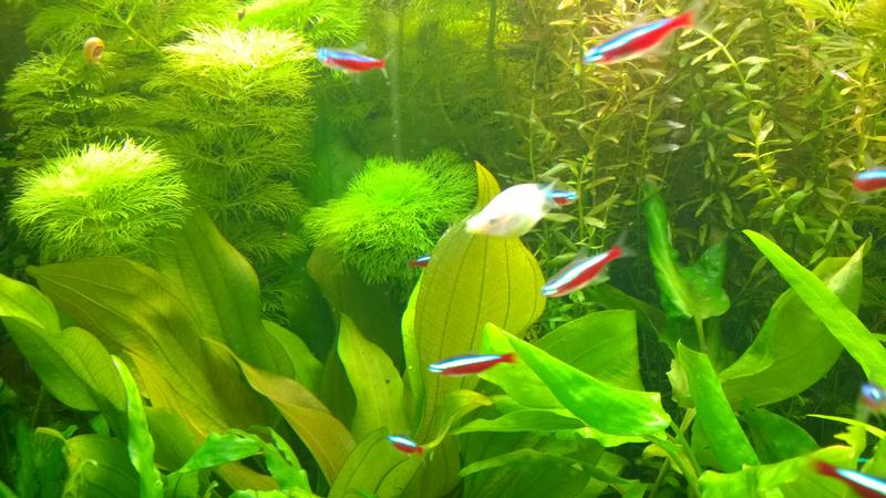 Обитатели - гуппи самцы - 4 шт., неон - 14 шт., данио розовый - 10 шт. (думаю зря запустил - летают шо дурные), САЕ - 2 шт., харацинки - 6 шт. (клевые рыбки), мелании - не считал))))).