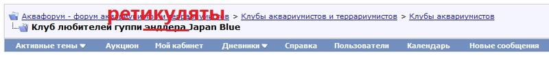 Я такую рыбу не держу , и как-то не интересовался информацией о ней ... В Украине называют эту рыбу джапан блу или японская голубая , подразумевая название породы . В мире с таким признаком создано множество культурных пород(без разброса других признаков) , которые по размерам , строению , форме плавников абсолютно отличаются от рыбы , которой посвящена эта тема / см. фото 1 Гернота и фото 2 Ронана /. Можно было привести еще множество фото , но думаю это излишне - и так понятно . Мне кажется , что селекционеры (в отличии от любителей) , под словосочетанием джапан блу , понимают не породу , а признак на предхвостье самца . Например Ронон относит признак джапан блу к зонарным рисункам и называет дословно "half" zone , объединяя под этим названием такие рисунки как : получерный , полукрасный , пингу , полуфилигрань и джапан блю /см. фото 3 Ронона /. Попалась интересная инфа - по названию рыбы , без упоминания слова эндлер ... /см.фото 4/ . Еще интересный штатовский сайт , где проводится аукцион . Цены по нашим украинским меркам приемлемые для продажи и организации экспорта разводимой в организовавшемся клубе любителей джапан блю рыбе . /см. фото 5 и 6 взятых от сюда - http://www.aquabid.com/cgi-bin/aucti...ersw1409634498 /.