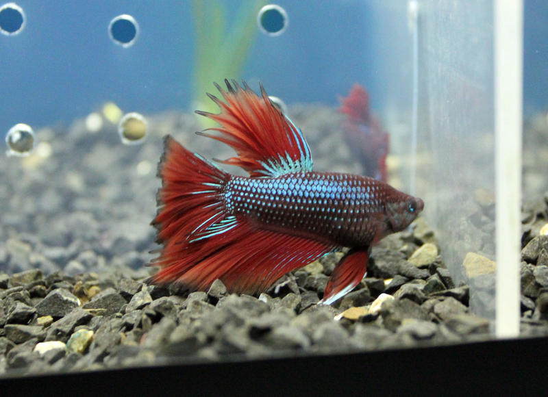 И да, отец петушат от Жаннет. Приехал, весь такой шикарный. А как до дела дошло, так пришлось поуговаривать. Точнее, собственно с нерестом проблем не было, а вот постройкой гнезда и уходом... долго выделывался, пока не получилось всё.
