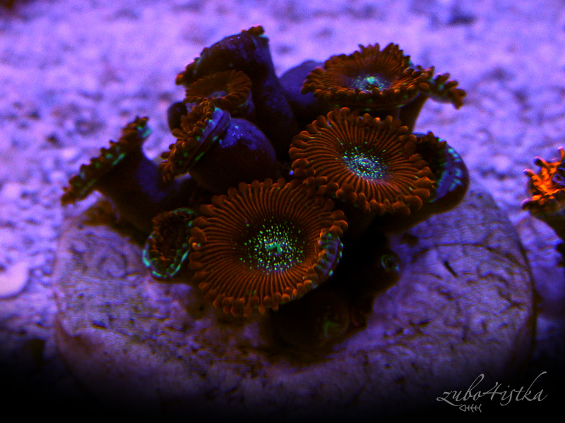 Еще плохие новости. Зонтики с той поры так и не отошли. Часть оклемалась не до конца - стоят полураскрытые, желтые остались на том же печальном уровне, а остальная нормальная часть начала хиреть. В основном зонты просто полузакрыты (свет не менялся, местоположение многих тоже), немного просели в цвете. Креветки постоянно их топчут, они закрываются, а потом не открываются до конца. Но вот недавно приобретенные красные зонтики выглядят ваще плохо. Полипы почти не открываются, сникли, один постоянно открыт с кишками изо рта наружу. Фоткать больно, сорри. Я думала дело в Секси, мол, топчутся постоянно и т.п. Но.
