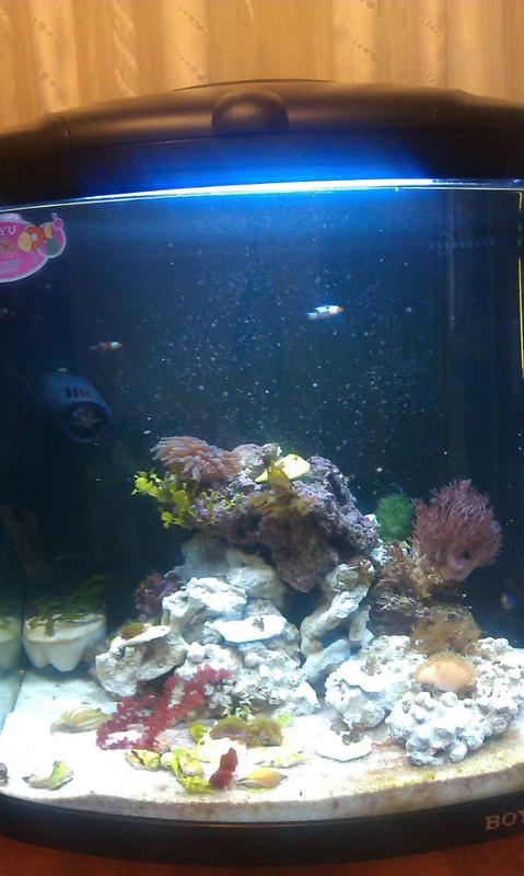 Через несколько дней досыпал песка. Уже рез несколько недель до меня дошло что подмены все же нужны, но по водопроводу я остовался верен  . Со временем докупалась живность и море заселялось спустя пол года аквариум был заполнен и приобрел какие то черты  .