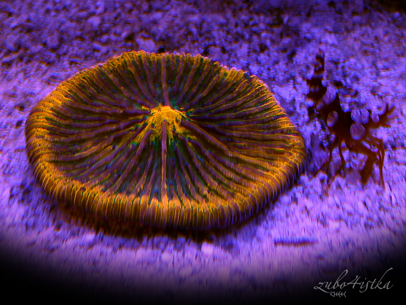 Теперь скукоживается родактис. Микромусса с позавчера постоянно выпускает кишки. Пока нормальными выглядят только бласто, лобо, акантастрея, турбинария, коврик и рикордеи. Остальная мягкота и микромусса чахнут.
