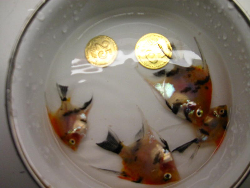и малька (Фотоаппарат-Canon-PS A590 в режиме "аквариум". Без фотошопа.Подсветка-обычная лампа дневного освещения.)