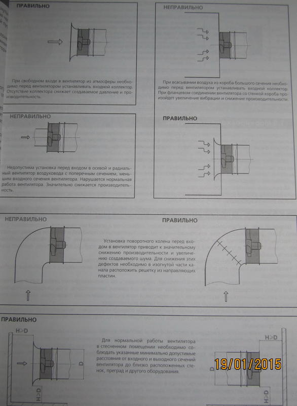 А вот с аэродинамикой стоило в первую очередь разобраться. Как вентиляционщик скажу неписанную истину - любой вентилятор канального типа должен иметь на всасе - 1 экв диаметр а вот на выходе аж 3 экв диаметра. С осевыми вентиляторами несколько все иначе на всасе 4 экв диаметр на выходе 2 экв диаметра. И еще вот вам картинки для усвоения нескольких моментов монтажа.