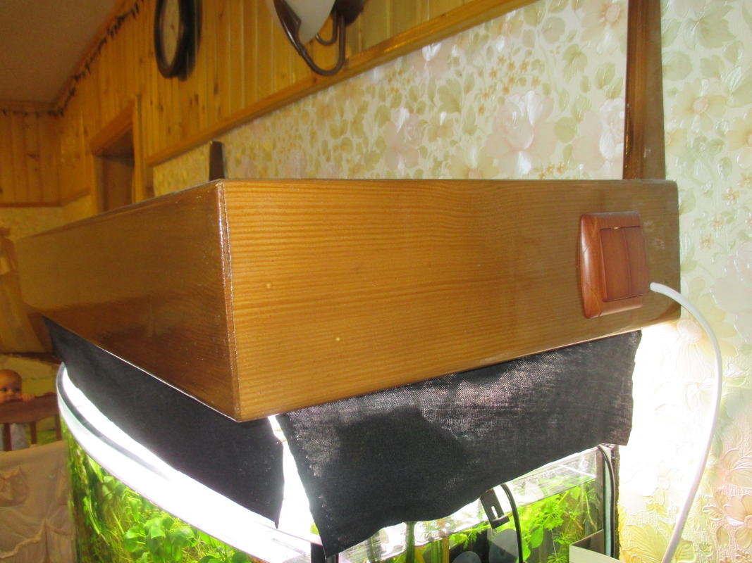 Пинотексом сверху яхтный лак.Снизу лампы закрыты стеклом, сверху двп Размер Д*В*Ш 109*13*42см высота