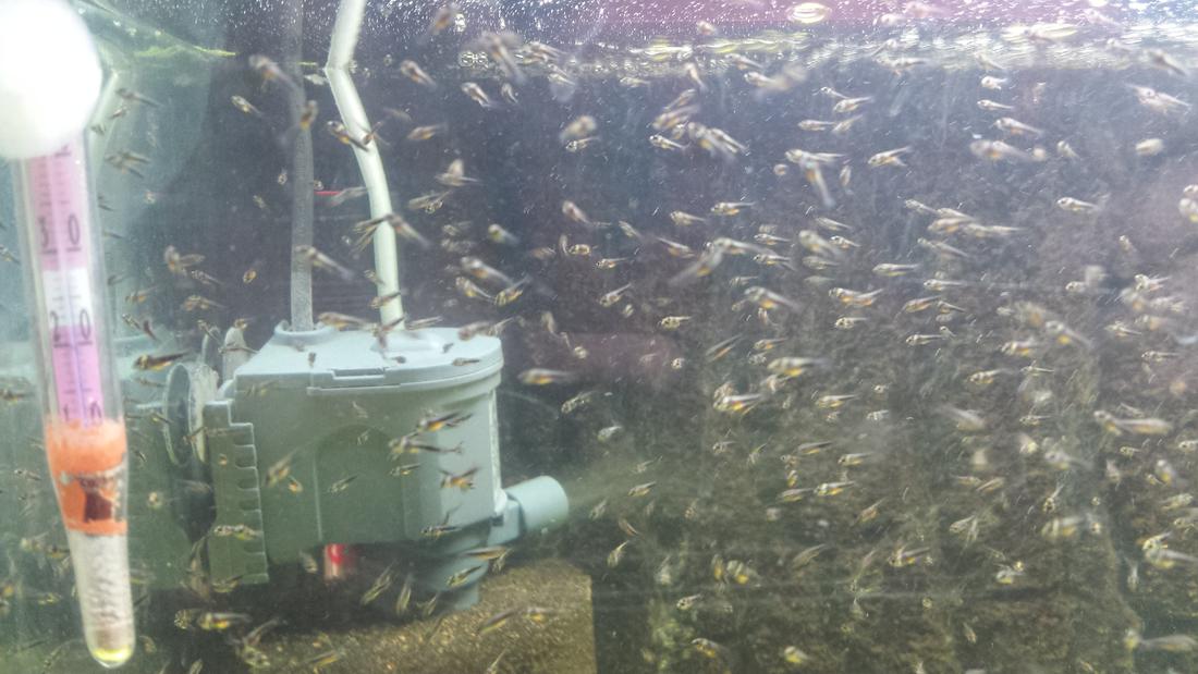 Малыши растут хорошо. Могу заметить, что соседство с креветосами и ампуляриями идёт на пользу - они подъедают то, что не съела малышня. Корм по-прежнему - разные фирменные сухари и заморозка пыли. Купленные нематоды и энхитреус (культуры) себя не оправдали - не растут. Деньги на ветер. Буду и дальше кормить фирменными сухарями. Планирую измельчить на кофемолке тетра дискус и добавить в рацион. Декапсулированные яйца артемии тоже идут "на ура!". Из новостей - вчера на день влюбленных та же пара опять дала кладку, пришлось срочно готовить новый инкубатор. А ещё очень хочу получить приплод от пары рэдов. Ну и фото на додачу.