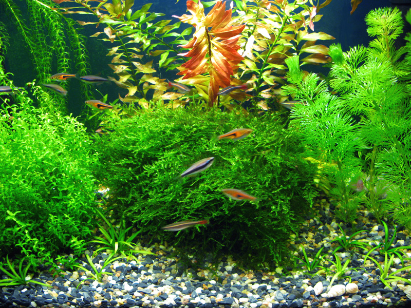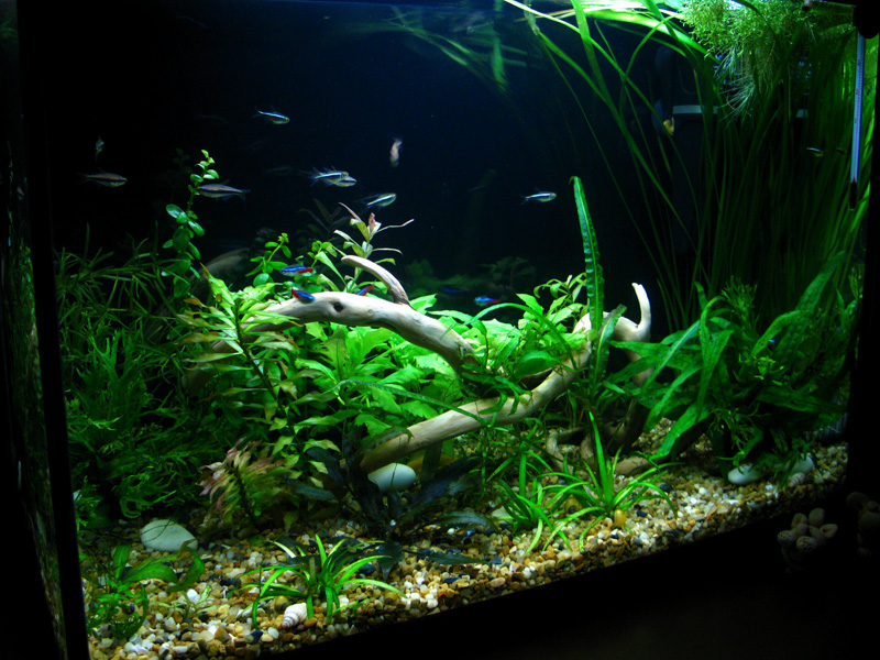 Вот наконец могу выложить фото с более приемлемым качеством. Фотографировать только учусь. Это макроподник, запустила два дня назад. Свет поставила Aqua Glo - отсюда такие несовсем естественные цвета - но выглядит эффектно. Корни лимнобиума, мне кажется, портят картину. Хочу добавить еще пару штучек данио полосатых. И вроде бы не хватает чего-то желтенького  . Мне интересны любые взгляды по поводу оформления.
