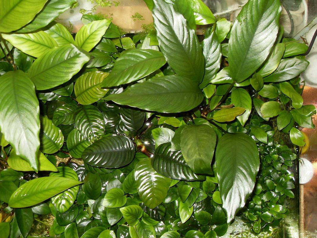 Анубиасы растут в трёх емкостях (аквариумы, 2 по 96л, 1 на 80л), правда, одна ёмкость на 96 литров временно превратилась в полуаквариум-полупалюдариум в связи с появившимся выводком попугайчиков.