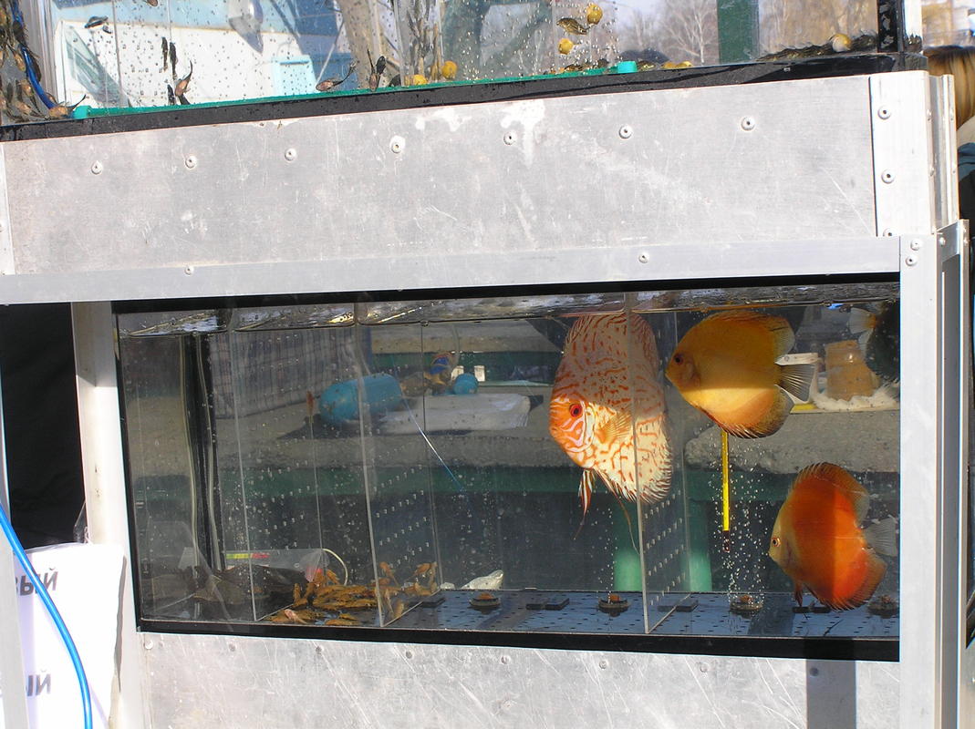 Погода сегодня была отличная и многие целыми семьями приехали на птичку.Немного фото с Харьковской Птички.Классные рубиновые,флаговые,санта -клаус и множ.других меченосцев,пецилий у Виктора.Из экзотов для меня удивительны -панцирные щуки,несколько видов рыбы -нож.Сомы,дискусы Андрея Туруева.И еще,еще...В общем, судите сами по этим немногим фото.....
