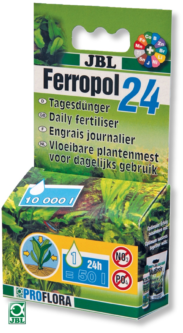 на сайте JBL в аннотации к ферополу 24 можно выделить основное- 1)содержит весь набор жизненоважных следовых элементов (почему-то не микро); 2) особенно рекомендуют при проявлениях недостатке калия и железа; 3) особо хороший результат в комплексе с пит. подложкой и еще какой-то хной.- как по мне нестыковочки на каждом шагу.