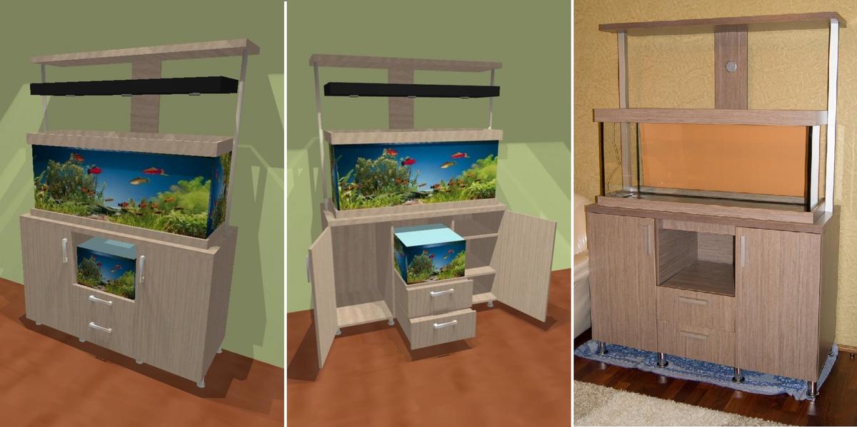 Тумбу довго шукав стандартну, але не знайшов такої, щоб максимально відповідала моїм потребам і вирішив зрештою спроектувати сам і замовити по ескізу у виробника своїх меблів. Основні критерії: - можливість кріплення підвісного світильника