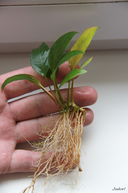 Anubias barteri var. barteri не похож. Читал где-то про такой анубиас, раньше в СССР его считали Бартера, но потом он зацвет как гетерофила.
