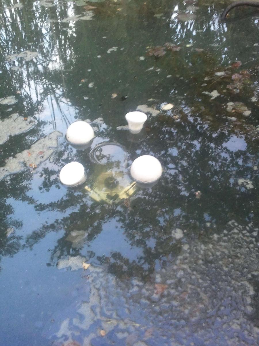 Контейнер (№1) из стаканчика 0.5л, ручка - дюбель для пенопласта. Сверху надо бы насадить поплавок - стакан уже раз утонул, еле достал. Пока ниткой привязал)