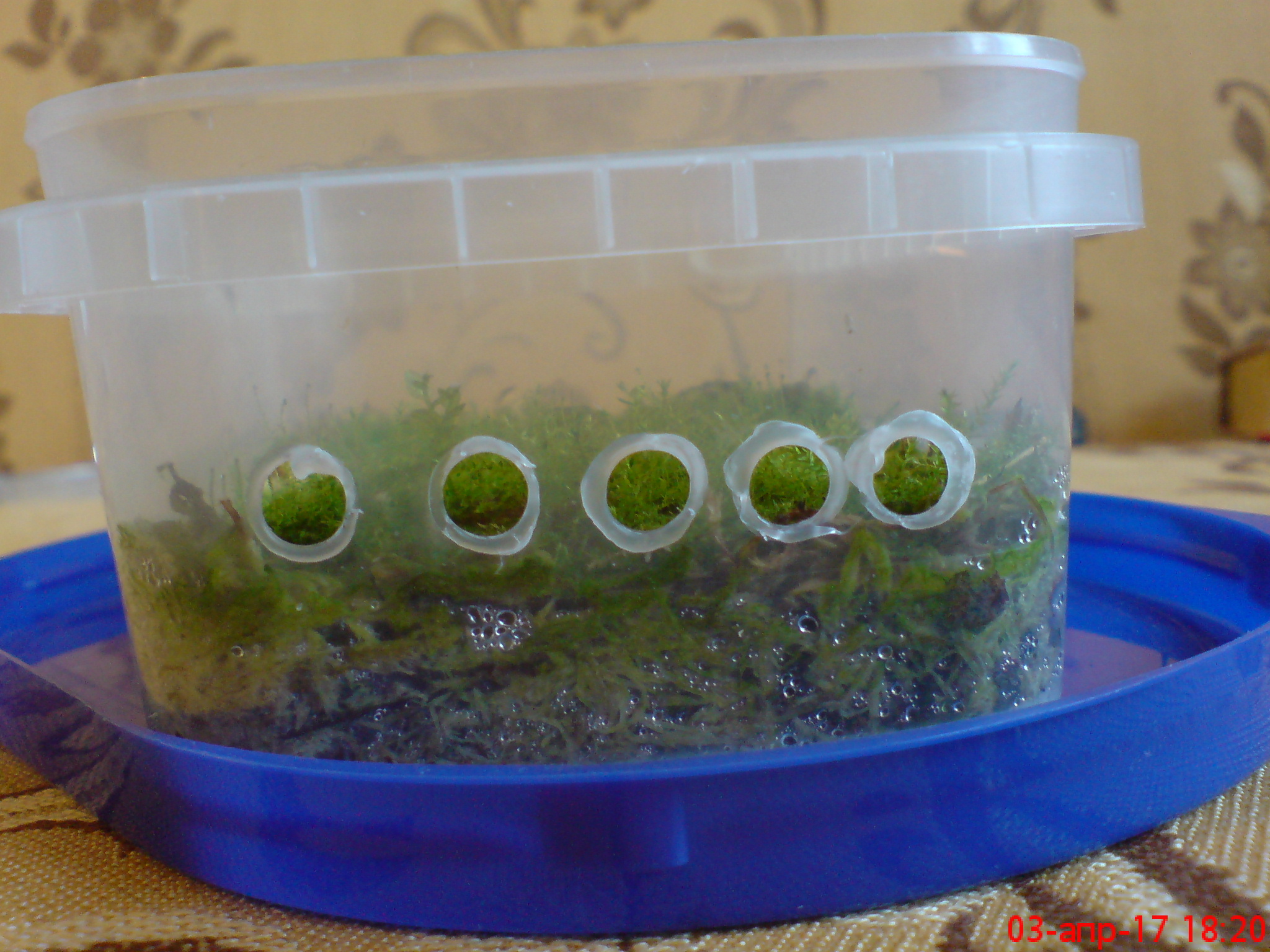 3. В судочке с "чистым" сфагномом залить водой дно. Я просто опрыскивал пару раз в неделю. Наверно это мало..