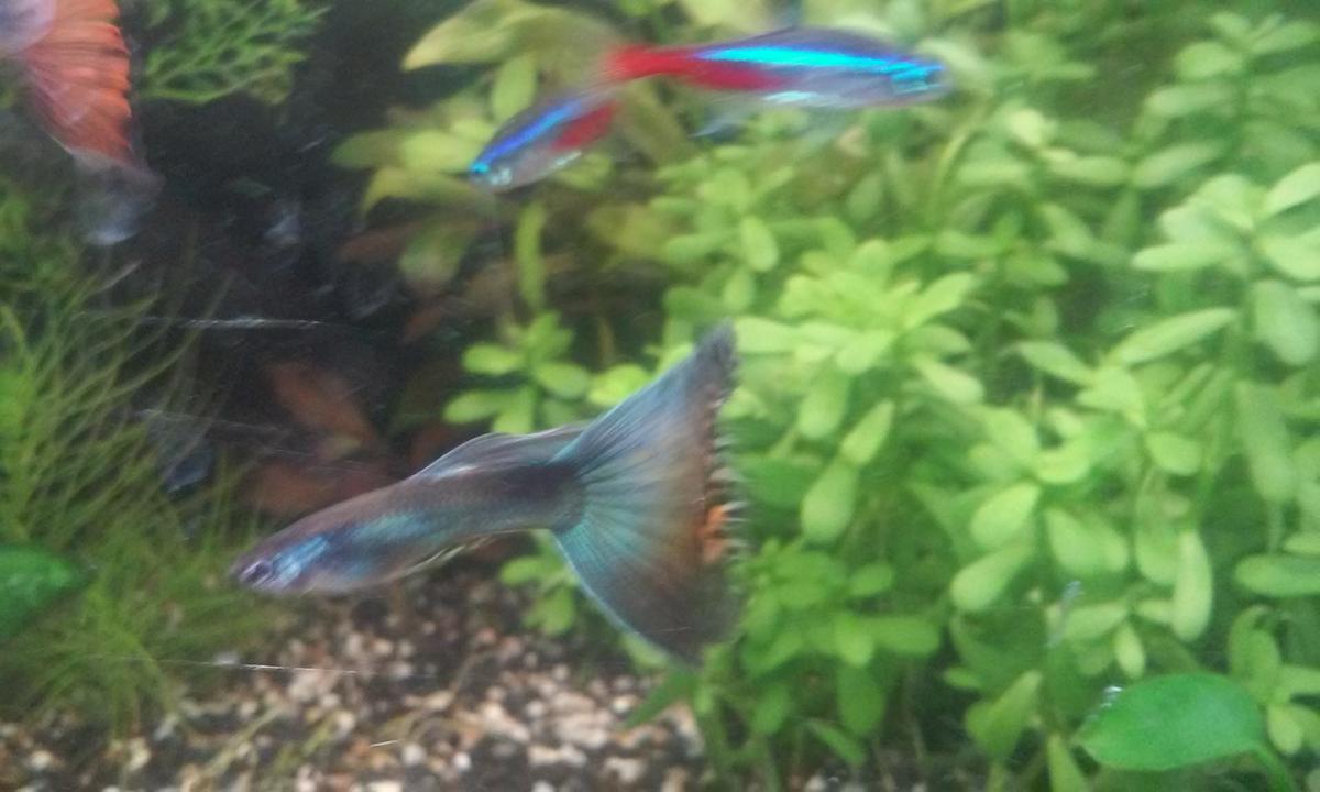 Отдам в добрые руки 10-12 взрослых и около 15 мальков Гуппи, все - помесь: гвоздики с синими(на фото), парочка красных блондинов и зеленая кобра. Не чистокровные дворяне, но очень красивые.