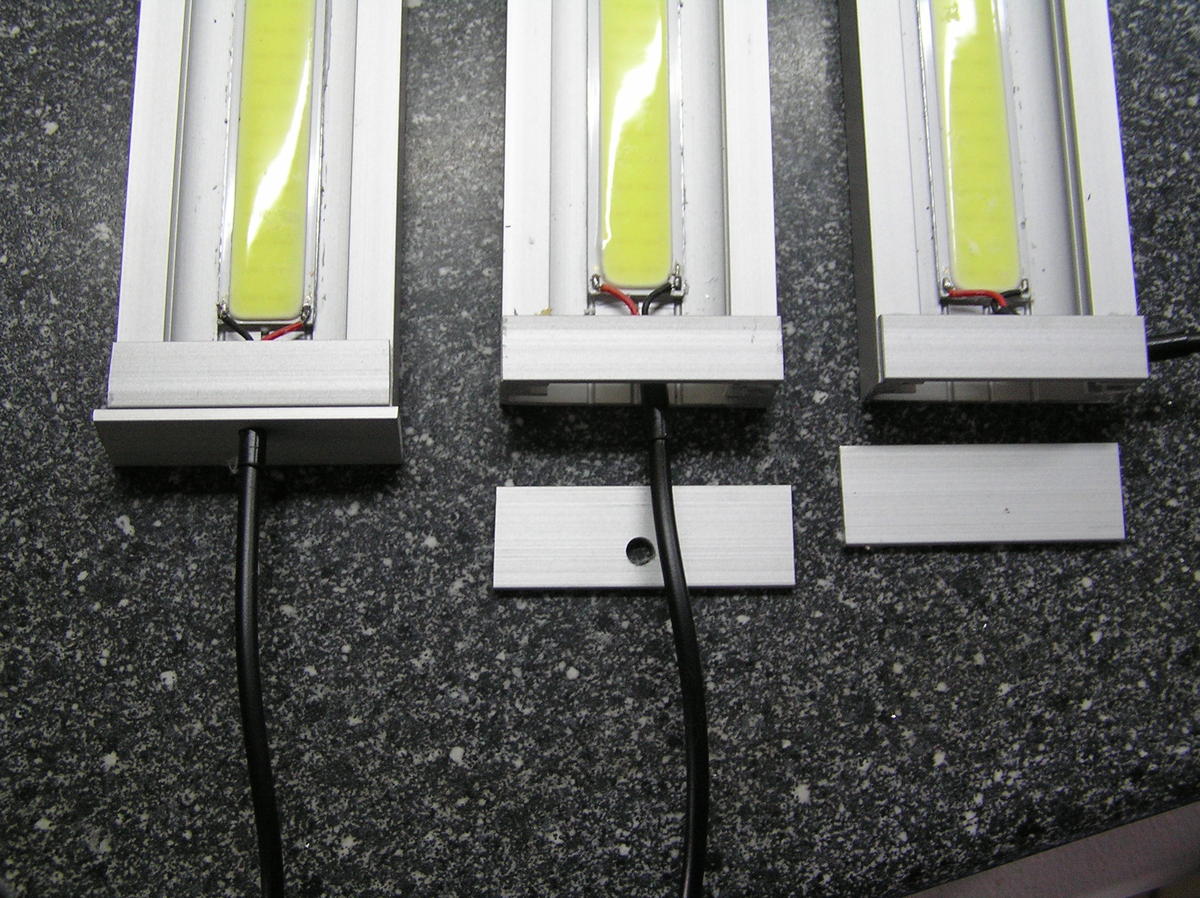 Взял на пробу две разные лед планки. Поставил обе по сторонам от верхней крышки. Что получилось-на фото. Та, что слева-3 вт., что справа-6вт. Положил их просто на верхнее стекло. Проработали 2 часа, температур от силы 40 гр. Решил взять вторую 3 ваттную и установить. Если слепить небольшие аккуратные коробочки с естественной вентиляцией, то будет сравнительно неплохо смотреться. Трудно определить качество света, но это в любом случае лучше, чем было без них.