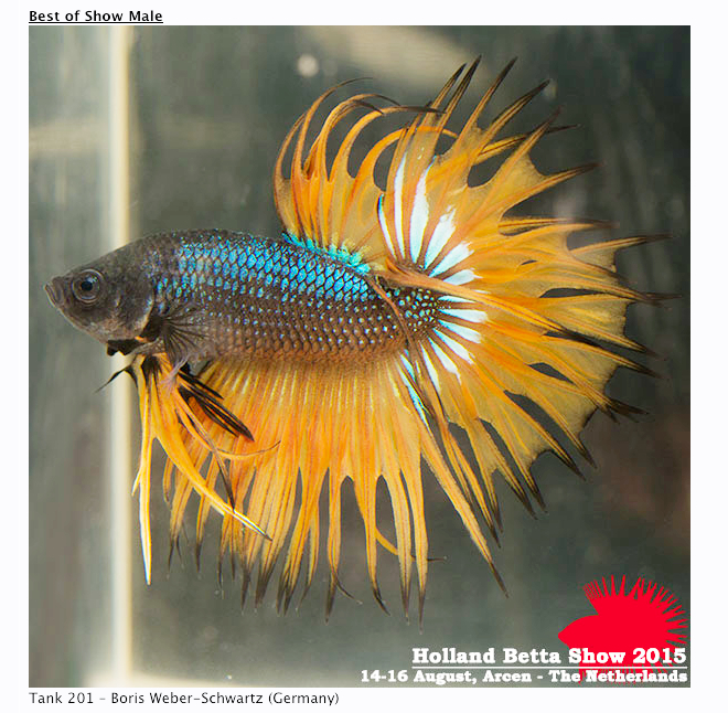 Holland Betta Show 2015.M5 Crowntail plakat male - All Colors (3 fish by 3 breeders from 3 different European countries)