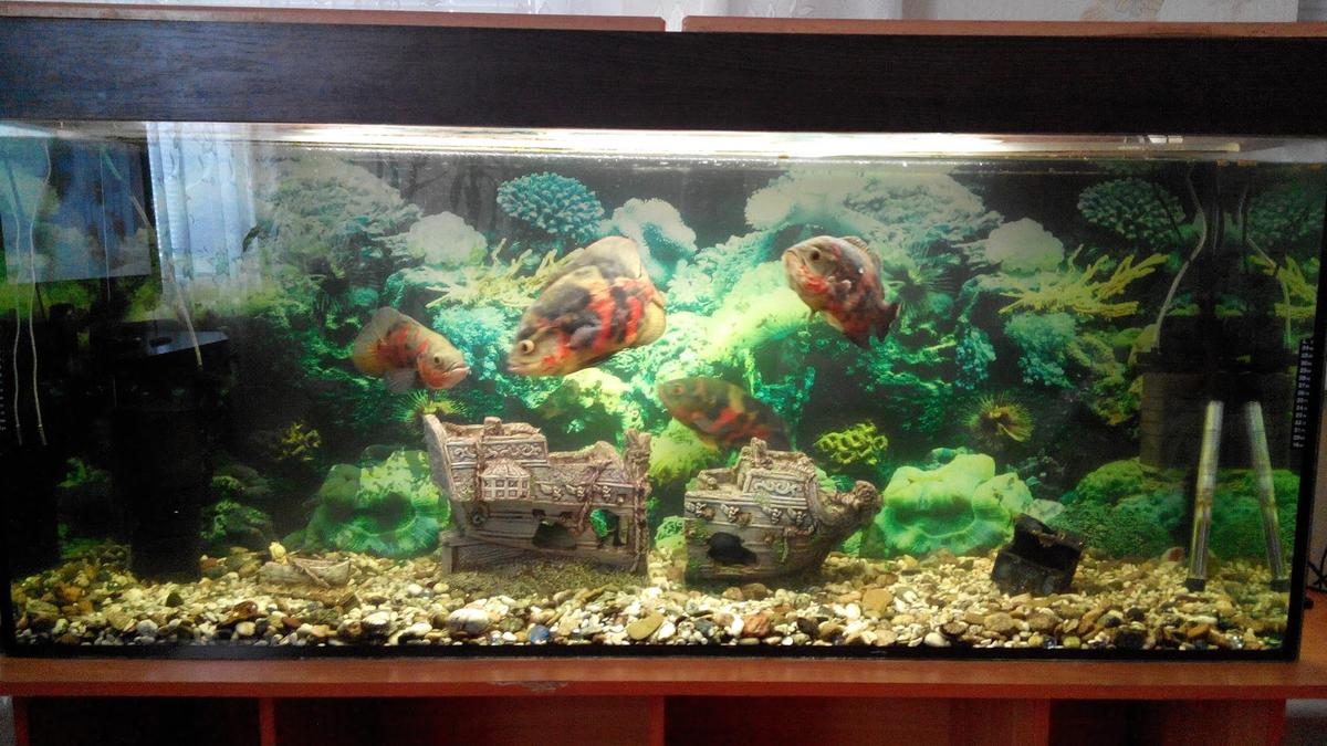 Для двух астронотусов нужен объем не меньше 200 литров, но лучше больше. Чтобы не поубивали друг друга.