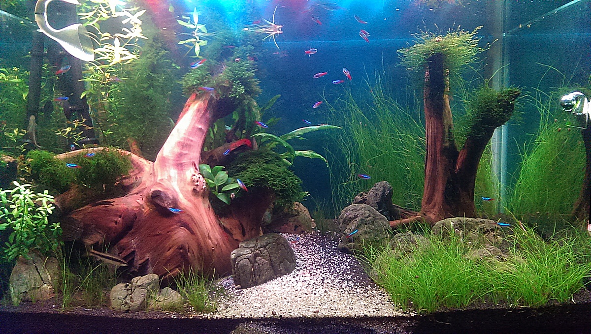 Сфоткал большую часть своего аква-хозяйства, на мой вкус, светильники смотрятся отлично.