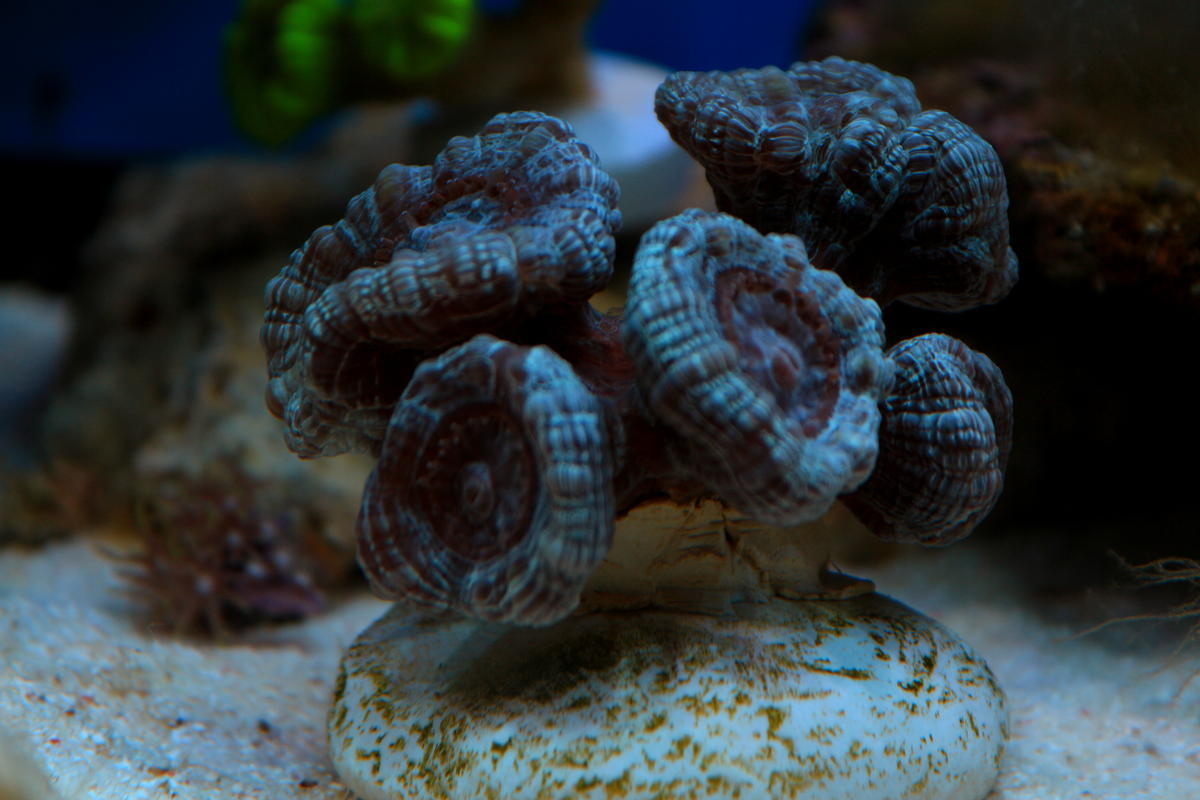 Фиолетовая, бирюзовая кауластреи, синяя дискосома и малютка Рикордея.