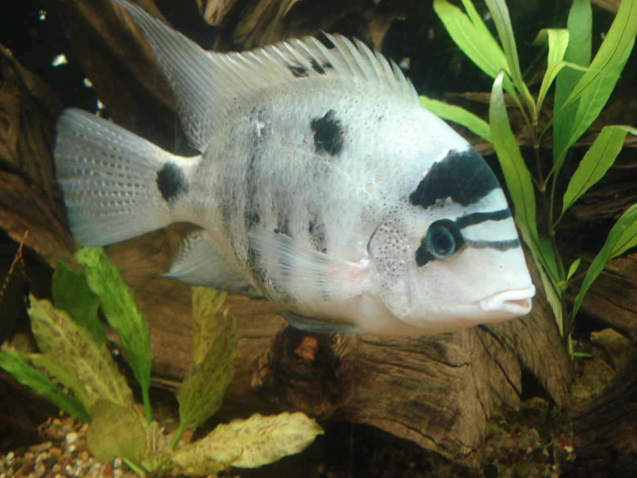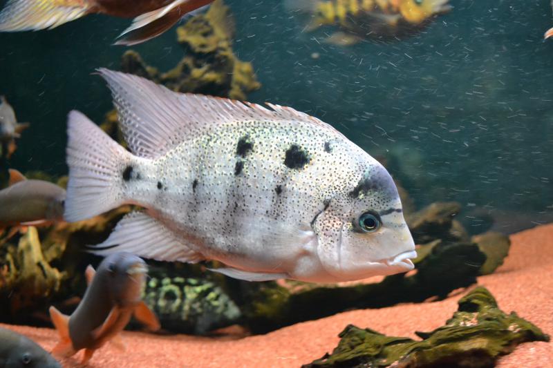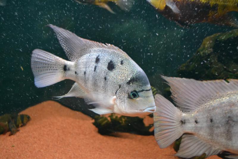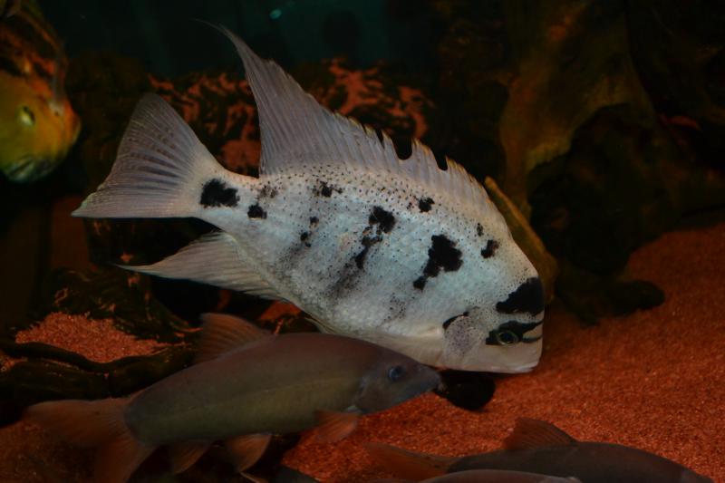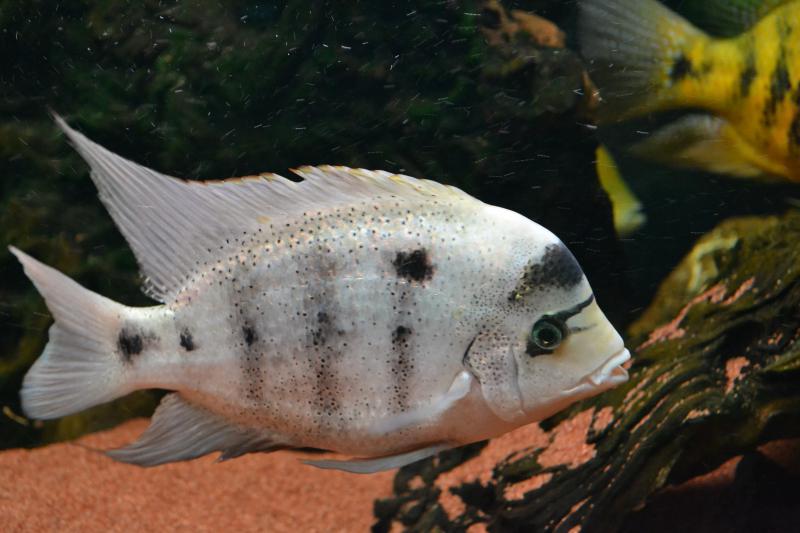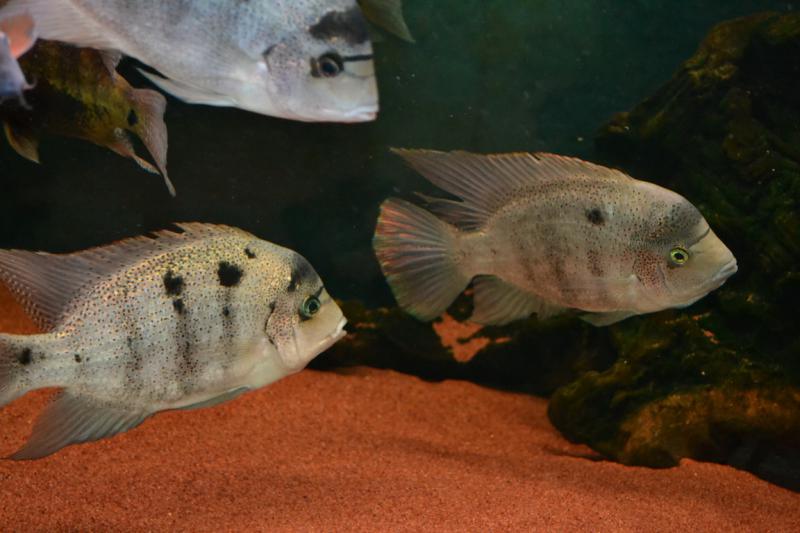Доминантная особь Vieja argentea, скорее всего доминантная потому что самая крупная.