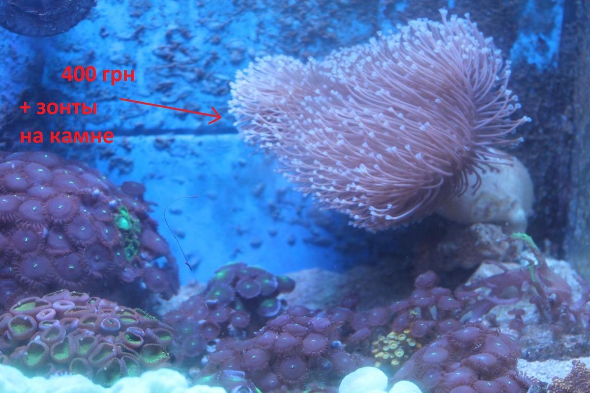 7.Зонты розовые на большом камне. больше 100 полипов + растут зоантусы разные на мидии (живой