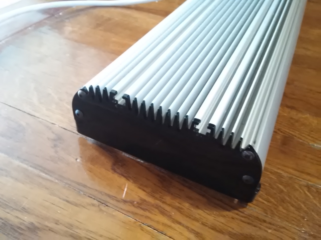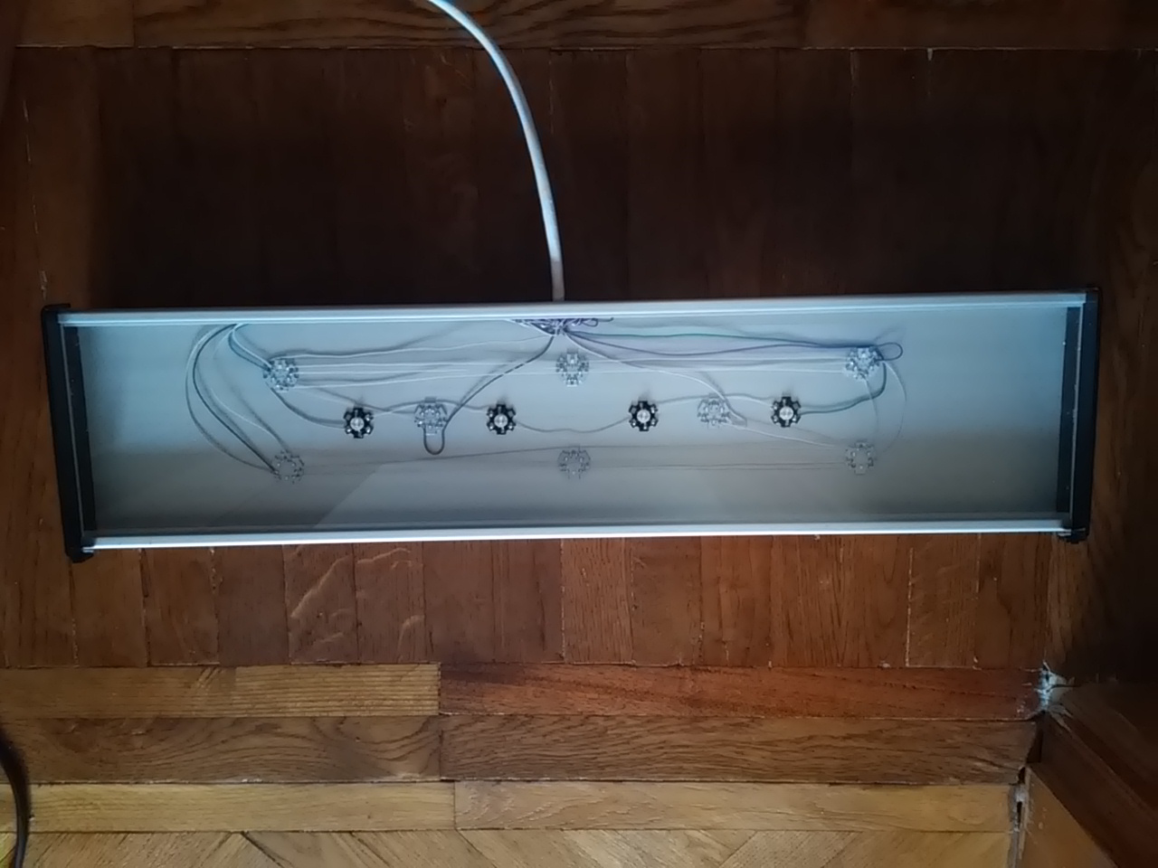 Светильник Лед 60 см отработал меньше года, стоял над покровным стеклом, состояние идеальное. Профиль БПО 3373 серебристый, заглушки-ножки черный акрил, защитное стекло диамант 4мм.