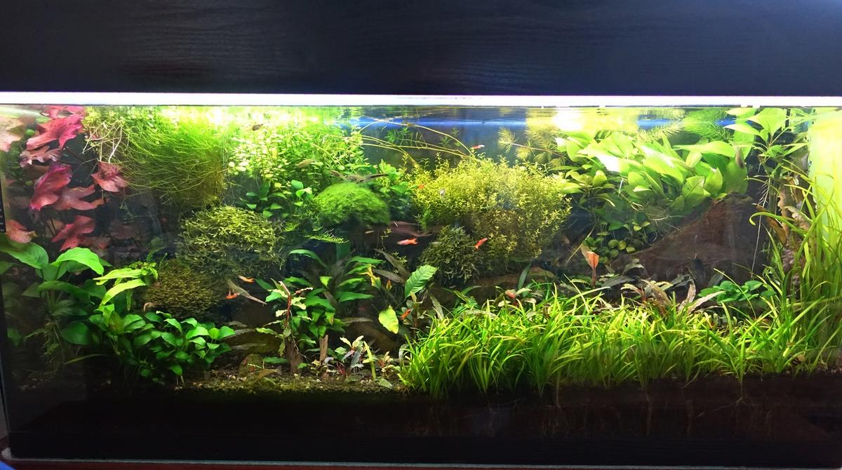 Свет : 90 Вт, из них 60 Вт гролюкс остальное 865 спектр. все лампы T8 по 15 Вт . Грунт : снизу гранит, сверху Fluval stratum. CO2 нет и видимо не будет. длина 100 ширина 31 высота 55. лью калий, микро и железо.