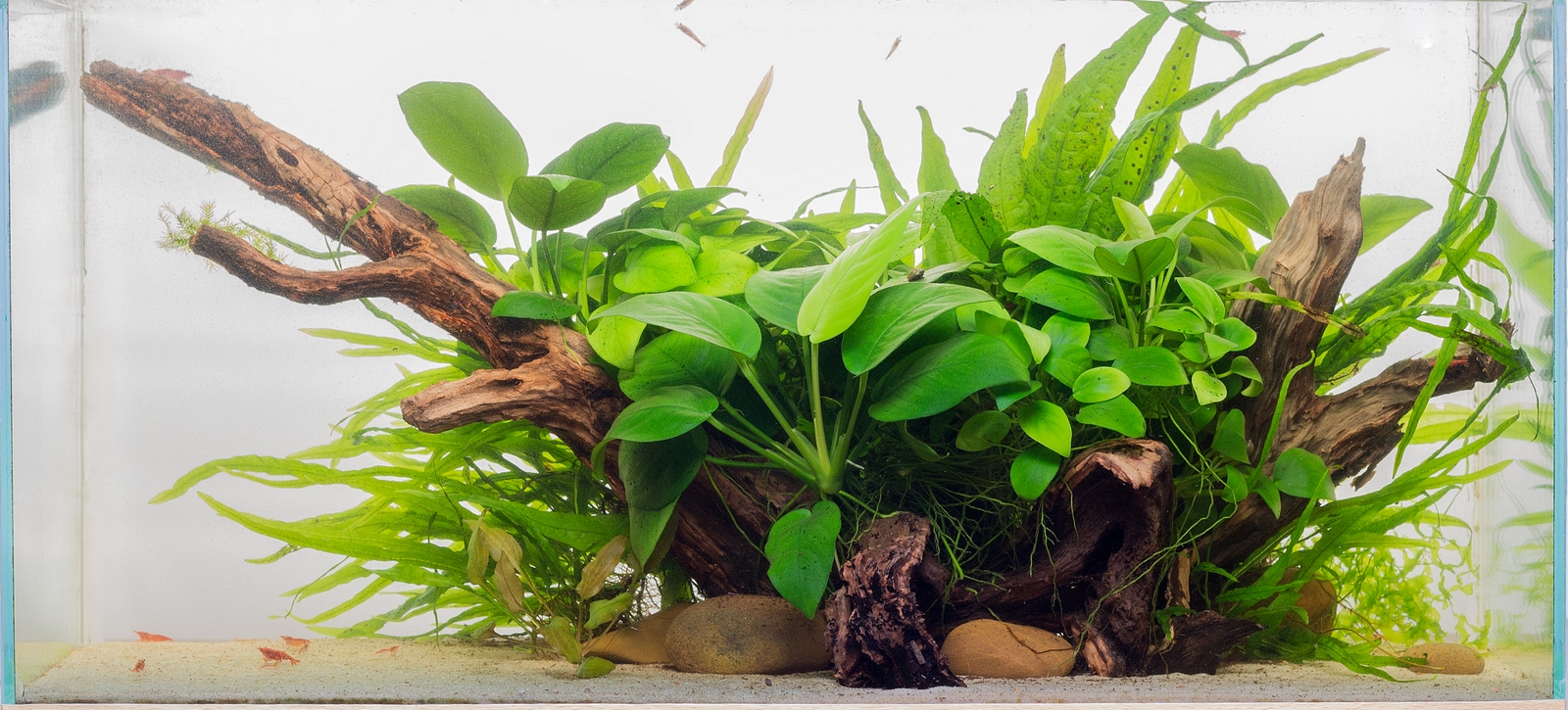 Давно я сюда не заглядывал. А ведь аквариум до сих пор живёт)). Только давно уже без рыб, с одними только креветками. И растет ну очень медленно (мне на радость). Практически в него не лажу. Подмены стал делать раз в месяц 5-7 литров. Вот так он выглядит сегодня: