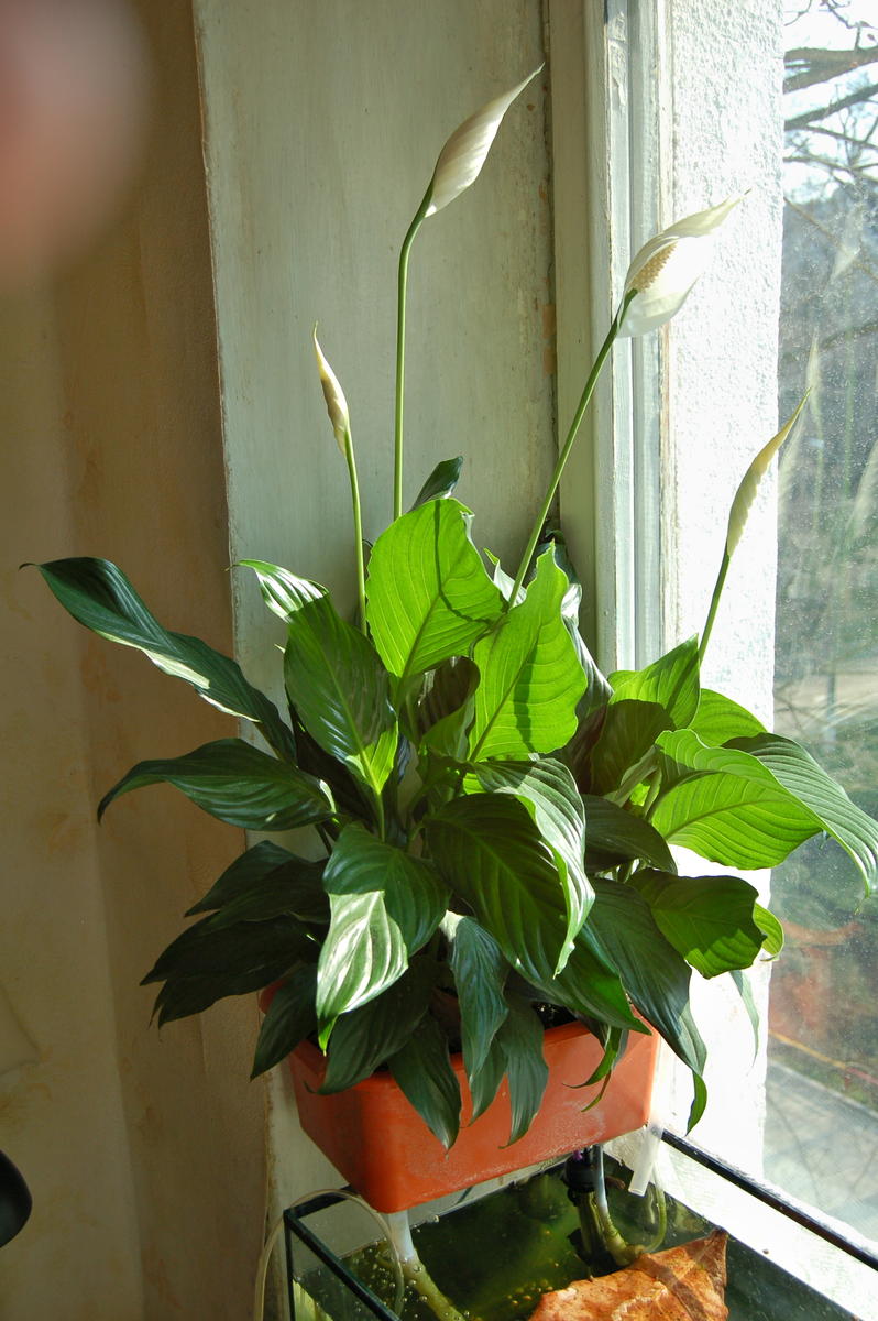 Спатифиллум хорошо подрос и очень хорошо себя чуствует. Единственное изменение которое сделал на прошлой неделе - убрал эйрлифт и поставил малюсенький фильтр сан-сан на подачу воды, т.к. на выходе эйрлифта слишком громкие хлюпающие звуки с которыми я так и не смог справиться.