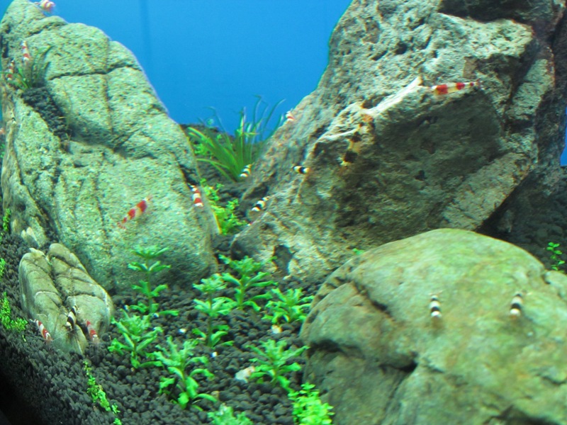 Недавно у меня появились новые обитатели аквариума - замечательные креветочки кристал ред и кристал блек. Очень нравятся. Даже есть маленькое пополнение, но здесь пока не все ясно, так как большая часть юных креветок куда-то исчезла. Пока не поняла, что с ними случилось.