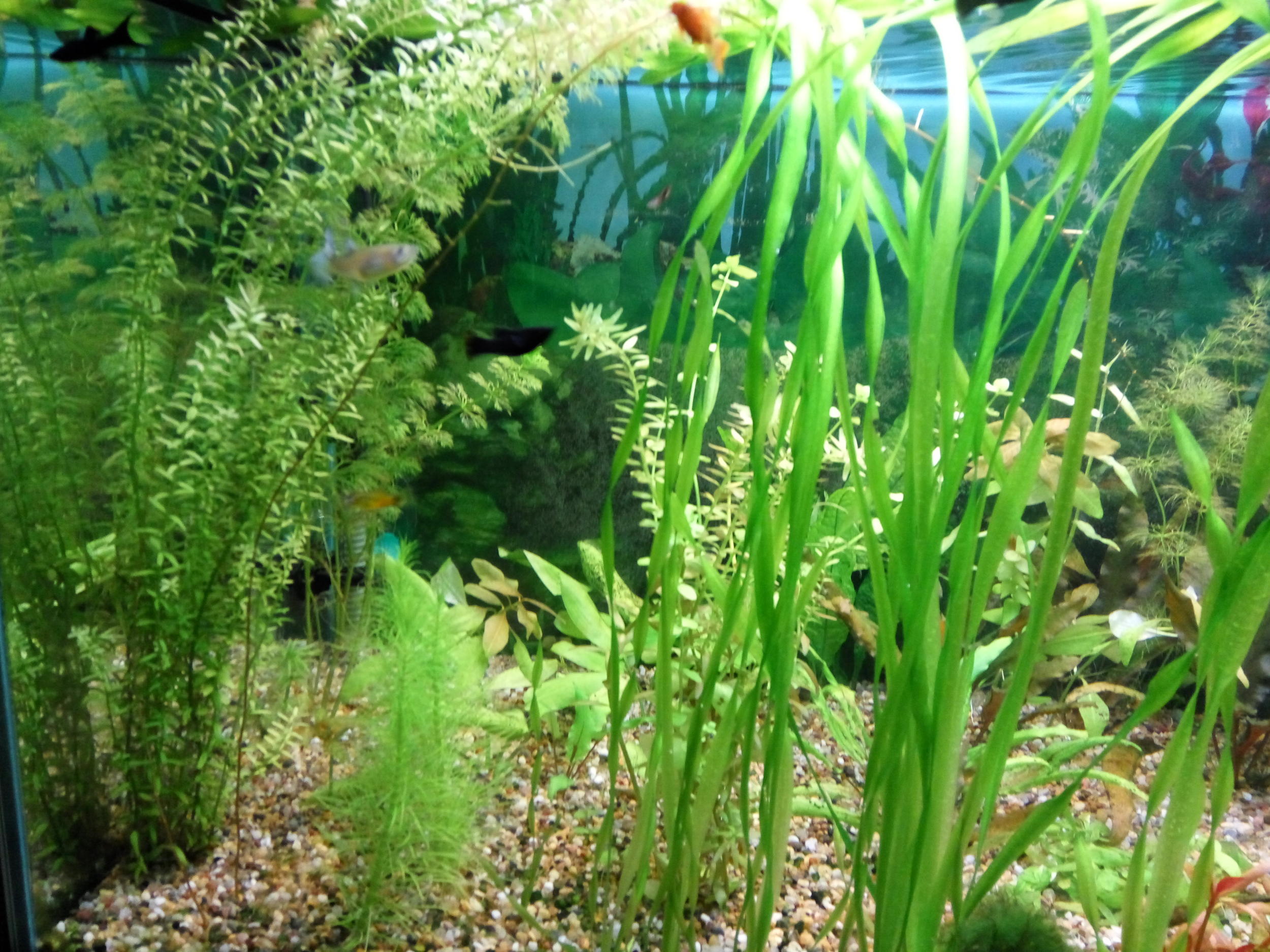 В аквариуме мной был подсыпан грунт и докуплены растения. Понемного начал вносить калий и иногда железо. Докупил немного рыбы. Стараюсь кормить рыбу по минимуму. Старался выполнить все по рекомендациям. Но растения рассадил хаотично.А некоторые и вовсе оставил на старых местах.