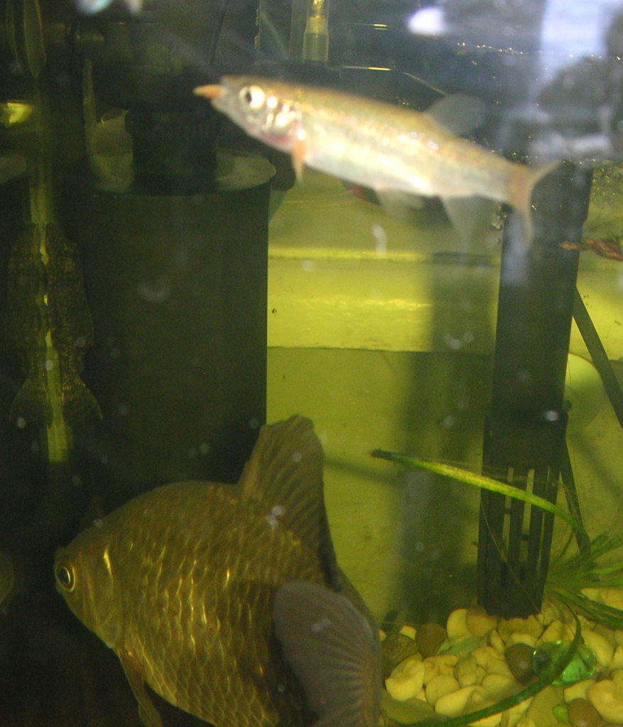 - Siurus glanis (сом обыкновенный) - ловил около 5 см длиной примерно в конце июля. Держал год. Растет довольно таки быстро и достигает огромных размеров. Хищник, очень прожорлив. Содержать можно только с очень большими рыбами(хотя не ел анциструсов даже средних размеров). Кормил мясом, рыбой, говяжьем сердцем, червями, лягушками и головастиками. В аквариуме не размножался.