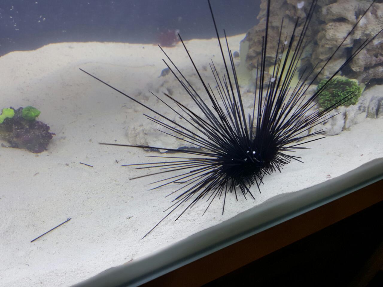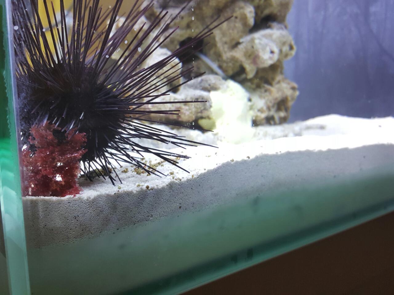 Еж очень активный, особенно в поедании травы ) срет он тоже не хило ) нужно будет брать еще стромбусов что бы за ним подчищали днище. У них это хорошо получается.