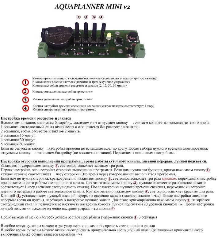 Спасибо ТС, заказ пришел, все гуд! Исполнение на высоте, размеры просто крохотные, функционал высокий- китай курит! Рекомендую, брал AQUAPLANNER MINI+AQUAPLANNER LED- неплохой стартовый набор! Буду собирать на старшую модель
