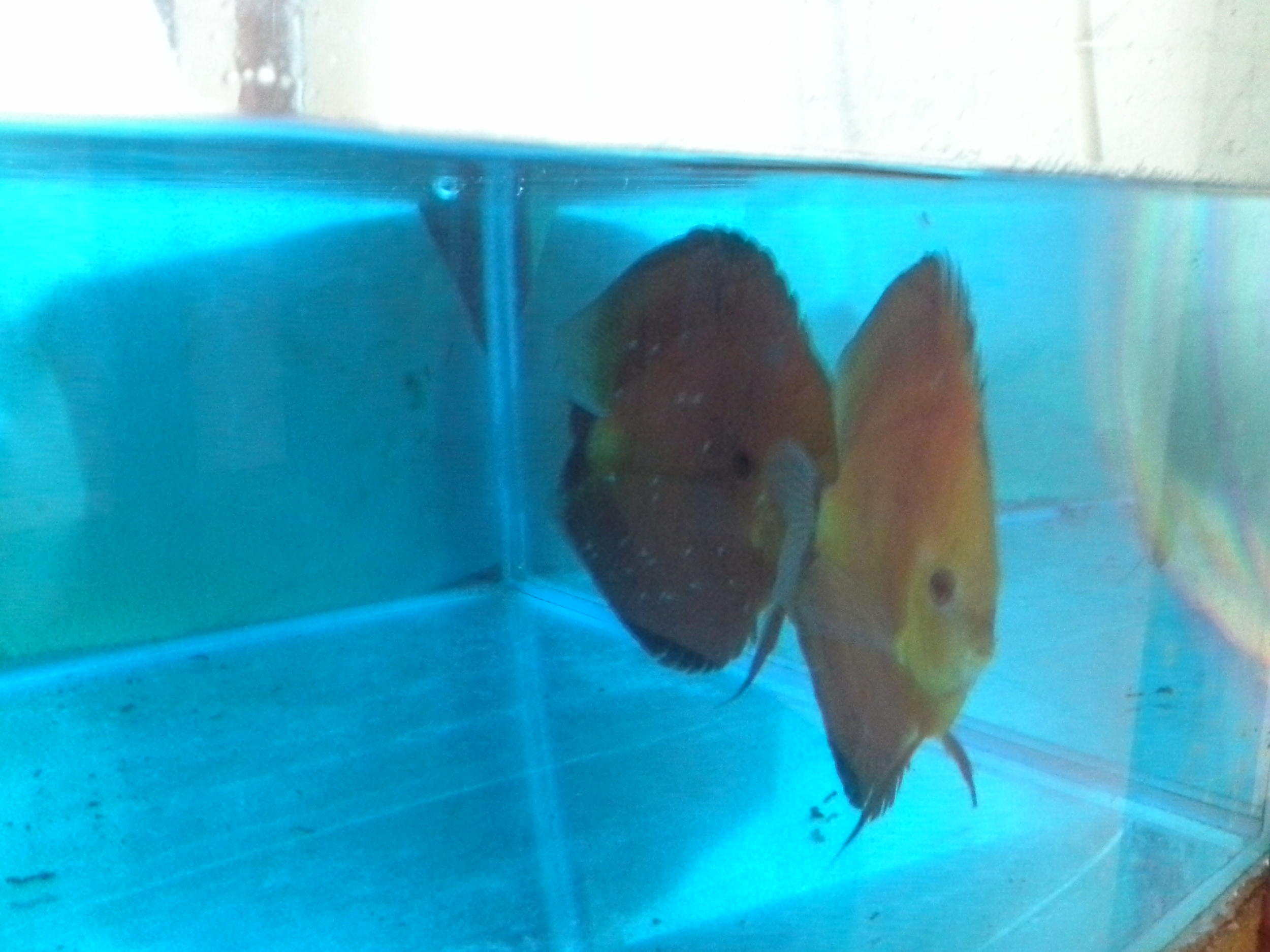 Фото с телефона, вчера. У меня дискусы долго скалярий не нянчат. Как только поймут, что это "кукушата", то съедят. У меня, обычно, через пару дней после расплытия диски съедают мальков скалярий. Эту пару кормлю личинкой скалярий первый раз, так что пока не знаю, сколько продержатся.