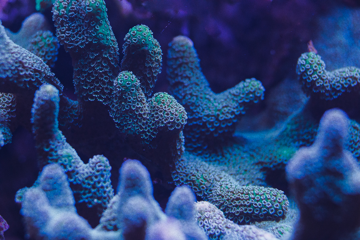 24- акропора рога 3х цветные зелено-голубые фиолетовые кончики