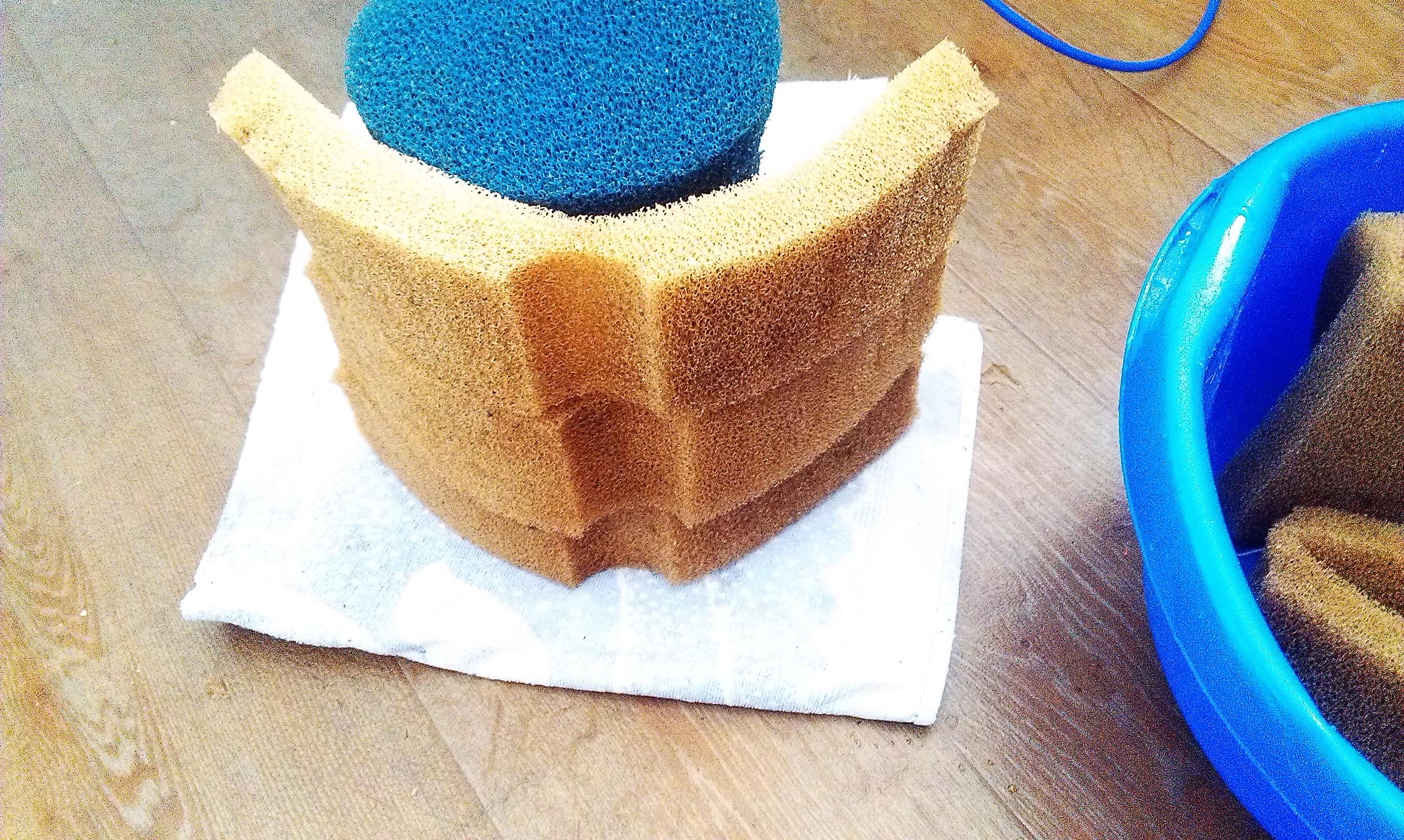 В последнее время бурно обсуждалась тема фильтрации и в частности о наполнителях во внешнем фильтре.В моих аквариумах всё банально просто.В 500л. стоит ФХ-5 набитый губками(см.фото 2;3) и внутренник(головка+губка) на 2000л.ч.,через который подаётся СО2.