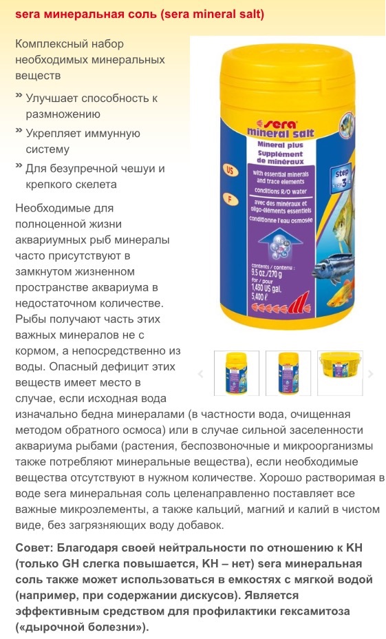 Да вода у Вас хорошая в водопроводе и соль можно добавить, но SERA с Украины ушла и если что то где то осталось то это "остатки былой роскоши" у нас и костопур поискать надо, дорого...