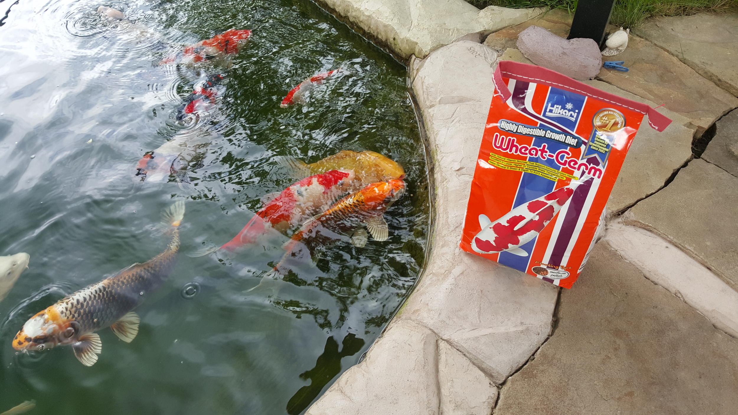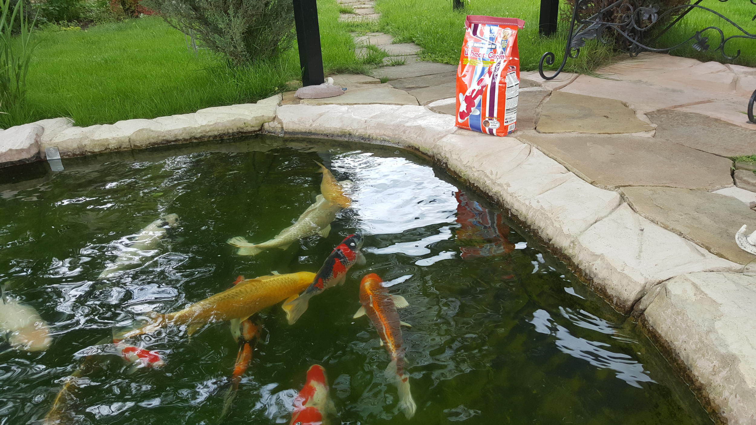 Запущены 3 маленькие кои. Наверное это получился более-менее нормальный и бюджетный прудик, который жил. Баланс восстановился