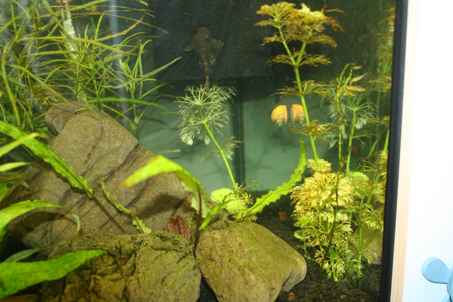 Население, до 2 десятков мелких барбусов (разных), пара мелких гурами, одна крупная гурами, 2 маленьких анцитруса, 1 таракатум 5-7см, пара мелких меченосцев, улитки.
