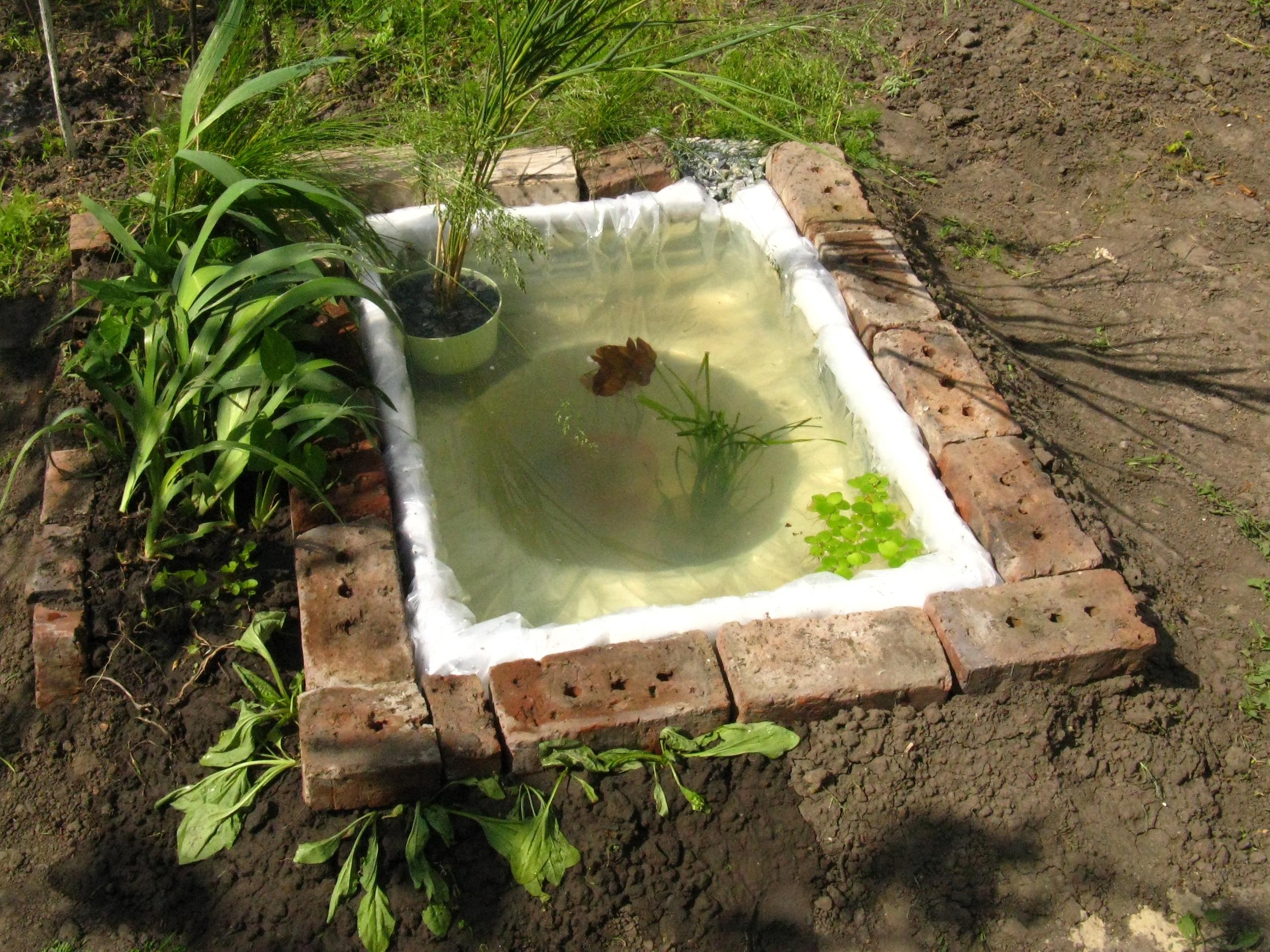 Очень интересная тема. Начитавшись об успехах Юрий Сахаров, подумал, что стОит и себе попробовать сделать подобное. Неделю назад соорудил "из того что было" мини водоём. В ход пошла лопнувшая миска, старые доски, упаковка с холодильника (подложка под ламинат/линолеум), и клеёнка в два слоя. Объём получился 150 литров. В самом глубоком месте 50 см до поверхности, на "террасах" 20 см.