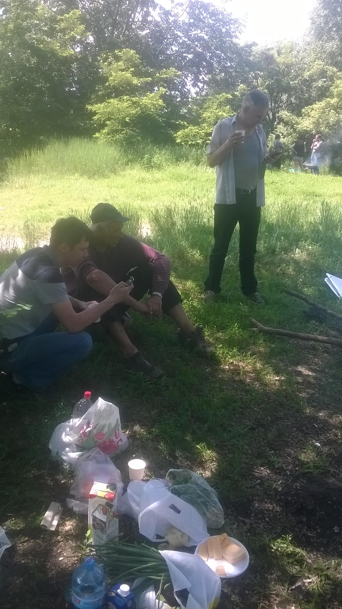 Сегодня мы , как и планировали, немножко подышали свежим воздухом. Собрались по расписанию, сходили за продуктами , спиртное решили не покупать, пили только натуральное виноградное вино премиум класса))) и кушали замечательный шашлык , который приготовил Fontango и ели овощи, запивая соками, ну и другие продукты + еще хорошо приготовленные на костре окорочка снова же Fontango . В приготовлении Руслану помогал Святослав.