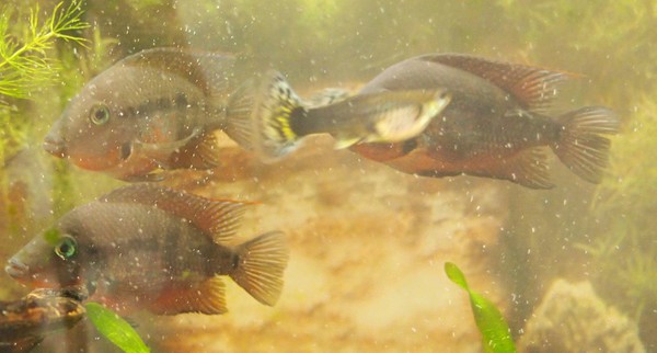 Судя по последней фотографии, Вы их перекармливаете, ожиревшая рыба теряет способность к размножению. В возрасте около 2 лет, самка должна быть, примерно, в 1.5 раза мельче самца. Если бы у Вас была самка, самцы устроили бы войну, за ее внимание и территорию.